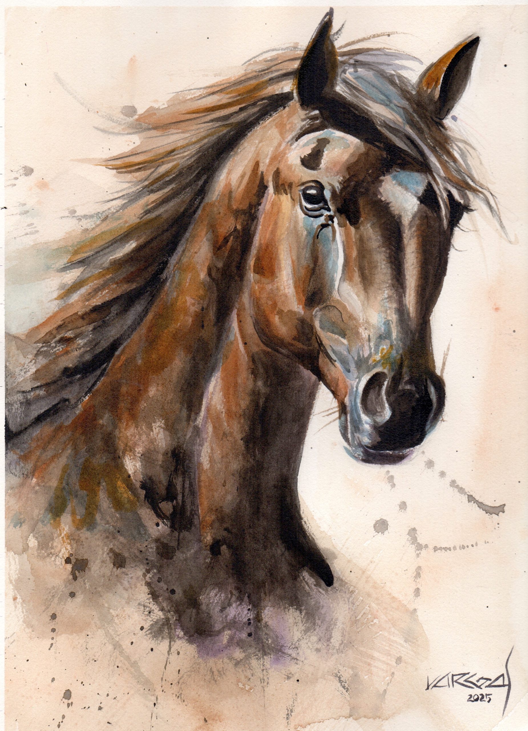 Caballo, 23x31cms (9"x12"), Acuarela Franco Arte sobre papel ARCHES Hot Press